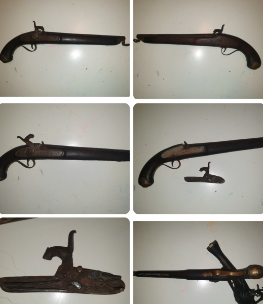 Siehe Bilder lauf 14mm ca cal 55? Tower oder Reiterpistole mit Dopper Halter keine Beschusszeichen sichtbar. Für Bastler der griff hat messing Beschläge und der Knauf ist auch aus massivem Messing , Die Schlossplatteist mit Gravierenden verziert der Hahn ist nach vorne gespalten und lässt sich halb und ganz spannen und abschlagen perkussion aptierung am Lauf. Innen blank. Der Griff ist holz, mehr kann ich nicht sagen, ich habe die Pistole in diesem Zustand erhalten.ohne Dopper