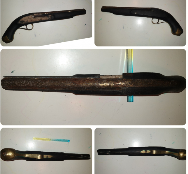 Siehe Bilder lauf 9mm xaliber angabe macht keinen Sinn da deko, keine Beschusszeichen sichtbar. Für Bastler der griff hat messing Beschläge und der Knauf ist auch aus massivem Messing , Die Schlossplatte fehlt der lauf ist mit gravierungen verziert, die Halterungen Laufs reicht weit in den Griffbereich herunter. Der Griff ist holz, mehr kann ich nicht sagen, ich habe die Pistole in diesem Zustand erhalten.ohne Dopper