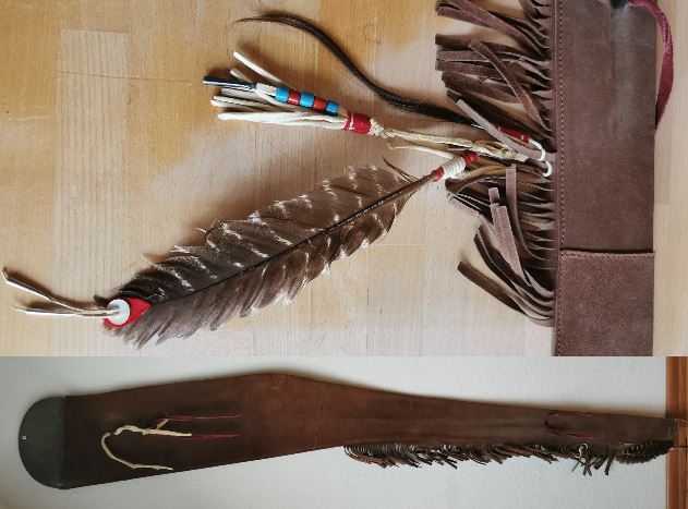 Abzugeben aus dem Nachlass ist ein Westernfutteral von David Pedersoli mit Fransen - extra lang - und mit besonderen individuell angepassten "Verzierungen", gefertigt in Handarbeit.