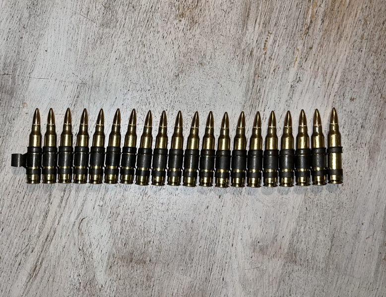 - 20 x .223 REM Dekohülsen auf passendem Zerfallgurt