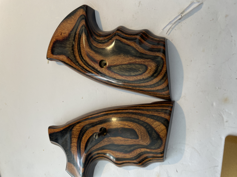 Edelholgriffschalen vom US Hersteller ACE, Smith&Wesson Revolver N-Frame, Square Butt, Großer Rahmen und eckigem Griffstück, neuweriger Zustand mit Schraube. (z.B. 27, 28, 29, 627, 629) Tigermuster