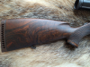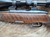 Die Waffe hat sehr schönes, dunkel gemasertes Wurzelholz, einen Sonnenschliff auf der Kammer und besitzt einen Feinabzug mit französischen Stecher (titannitriert). Original Bedienungsanleitung und Anschusskarte vom BüMa wird mitgeliefert.