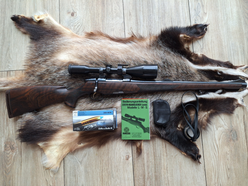 STEYR Modell L im Kaliber .308 WIN als Stutzenschäftung in der Luxus Ausführung mit hervorragender Schussleistung (siehe Anschussbild).