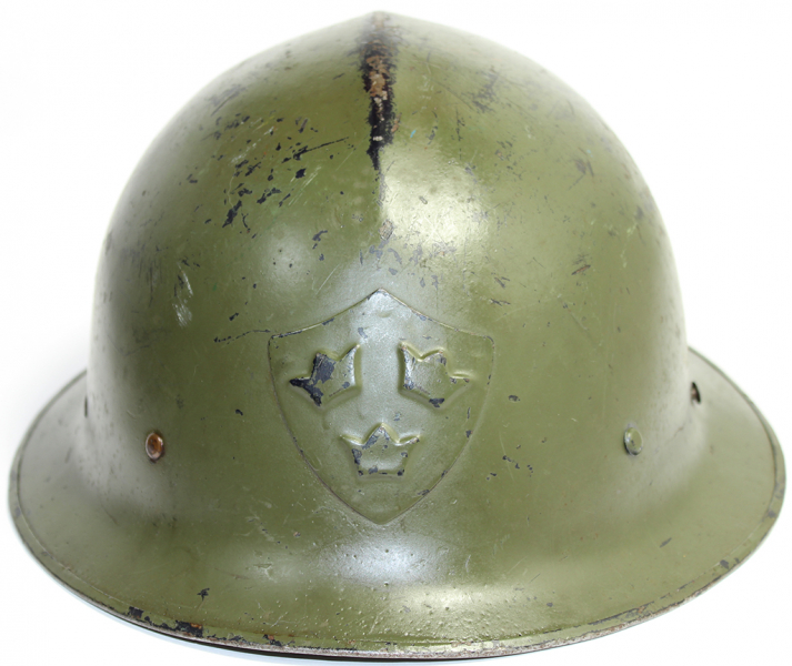 Der Helm war dunkelgrün oder graugrün lackiert.