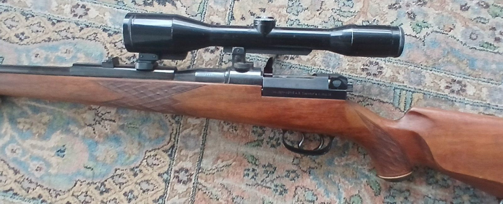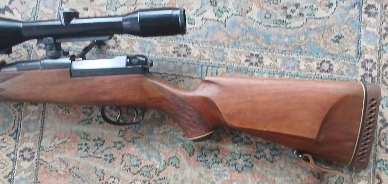 Kaliber: .243 Win.; dt. Beschuss aus dem Jahre 1971; Lauf ist blank; ventilierte Gummischaft-Kappe (leicht beschädigt)