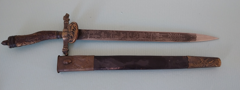 Alter Hirschfänger mit Ätzung Gott mit Uns 48 cm lang Zustand siehe Fotoserie