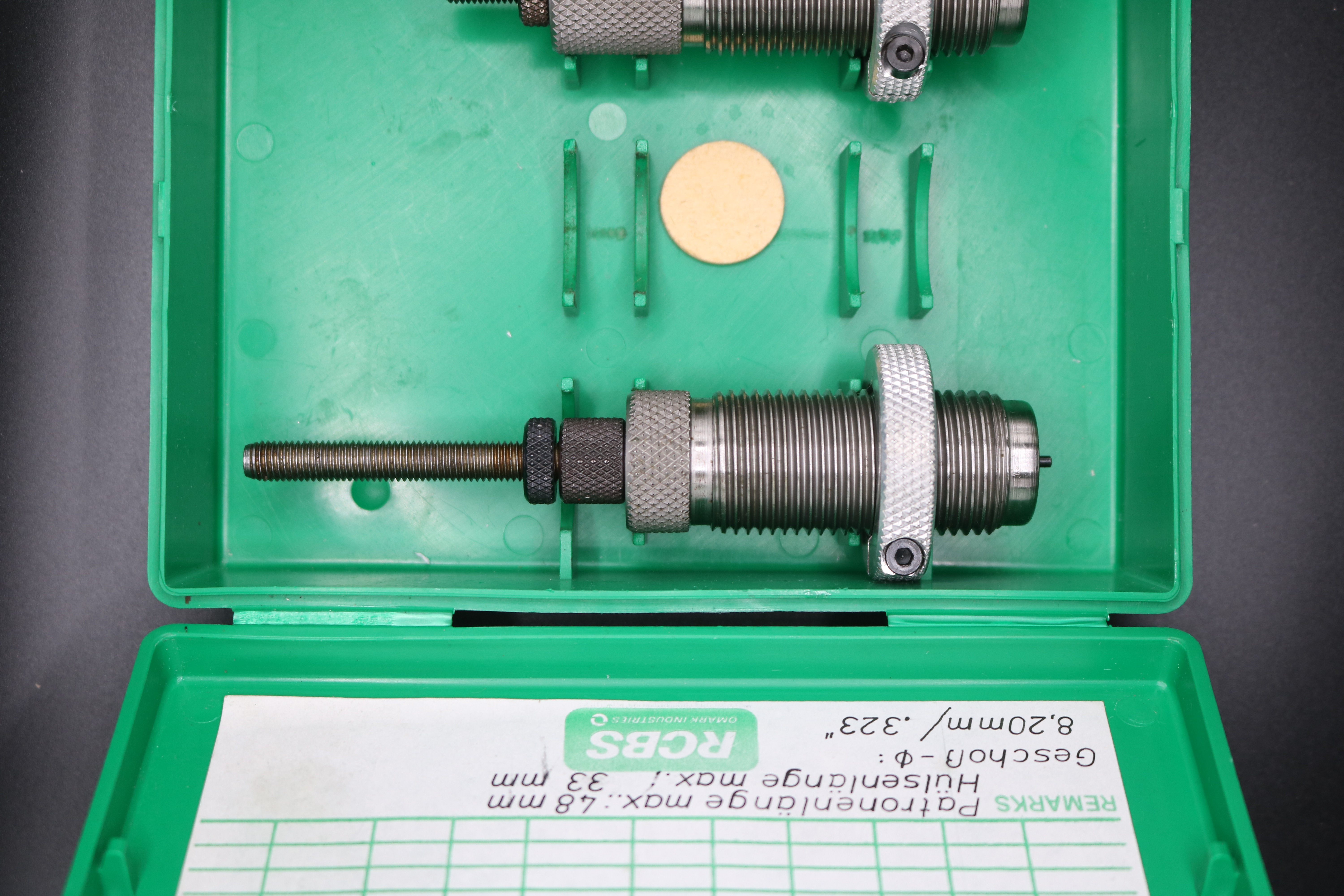 Verkauft wird ein Matritzensatz im Kaliber 7,92x33mm bzw. 8x33mm bestehend aus Vollkalibrier- und Setzmatritze.
