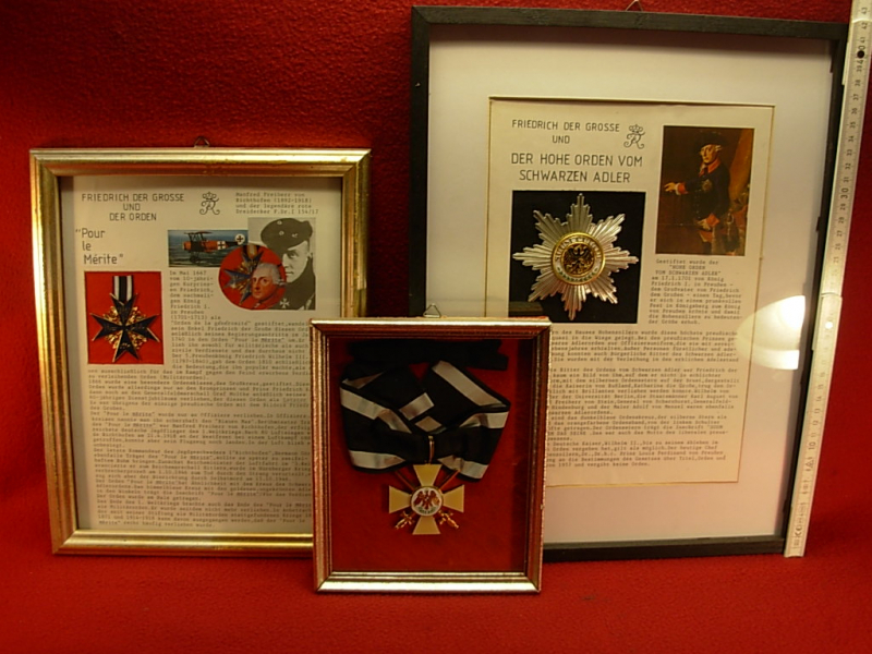 I.WK Orden im Rahmen Kaiserreich – Pour le Merite – Bruststern Schwarzer Adler – Roter Adler Orden – alle im Rahmen unter Glas – Ideal fürs Sammlerzimmer –––- Zustand siehe Bilder . Artikel stammt aus Sammlungsauflösung. Bei Fragen bitte Mail-