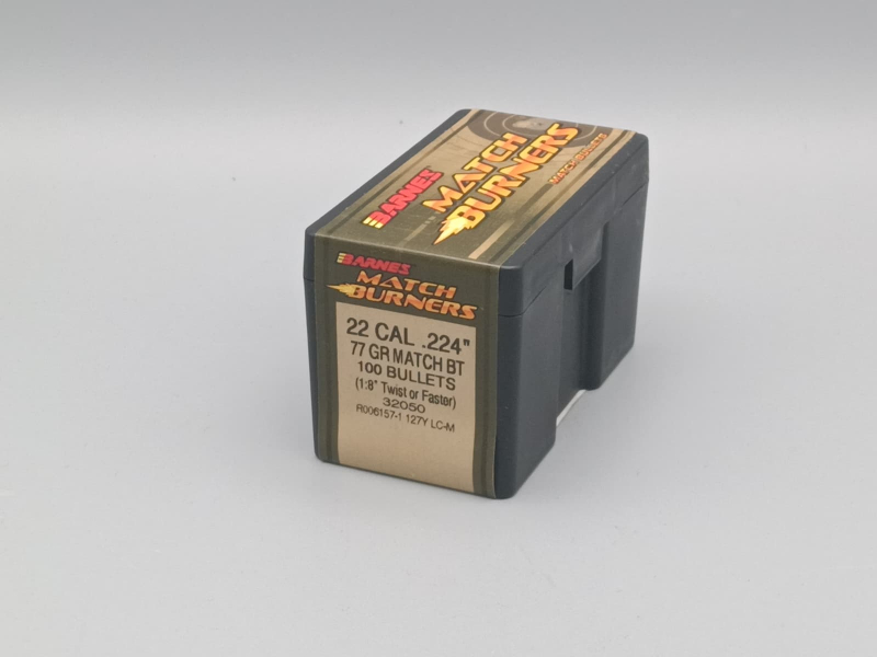 Die Barnes Match Burner Geschosse im Kaliber .22 mit 77grain wurden speziell für präzisionsorientierte Wiederlader und Sportschützen entwickelt. Sie bieten eine ausgezeichnete Kombination aus hoher Eigenpräzision, konstanter Fertigungsqualität und einem attraktiven Preis-Leistungs-Verhältnis.