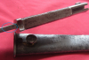 Die Klinge ist sauber. Die zugehörende Scheide hat ein paar kleinere Dellen, ansonsten guter Zustand. Der Knauf wurde offenbar repariert, er ist fest. Das Messer sitzt gut in der Scheide. Klingenlänge ca. 24,8 cm. Gesamtlänge in der Scheide ca. 40 cm. Einzelheiten siehe Bilder, sie sind wesentlicher Bestandteil der Beschreibung. Privatverkauf.