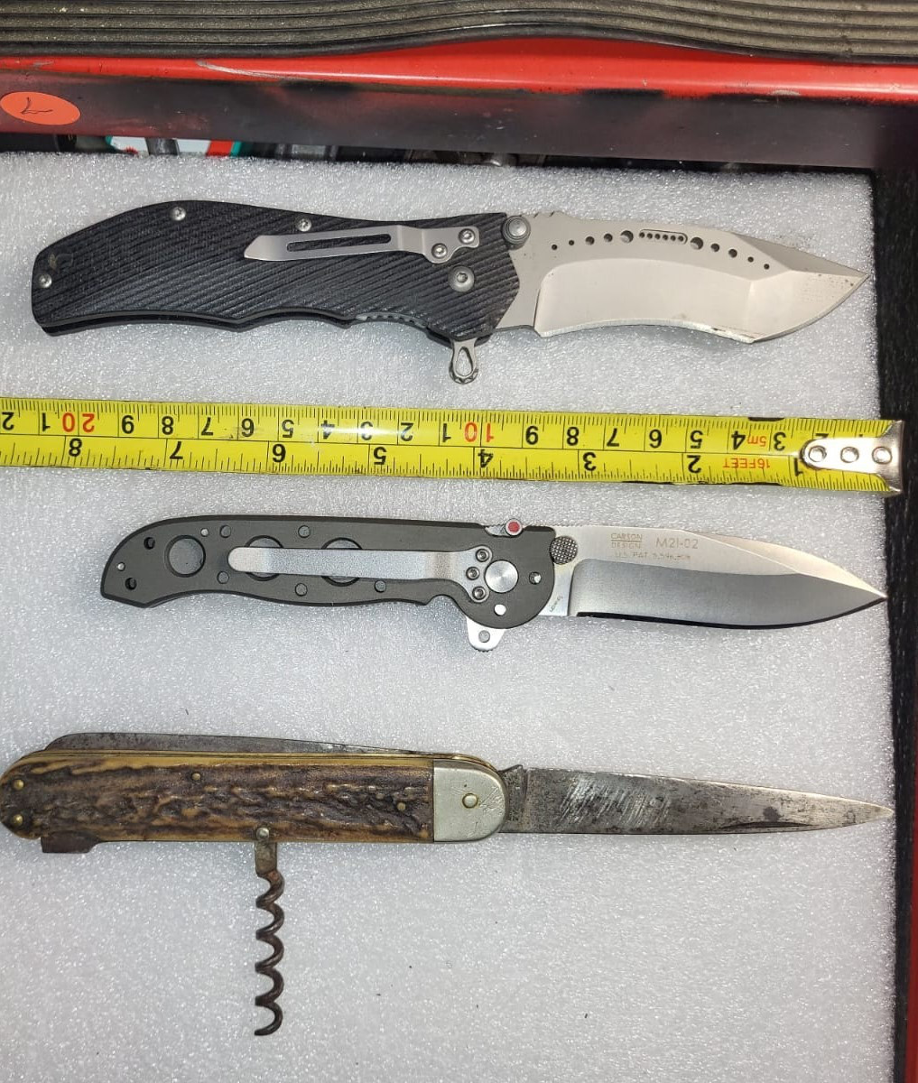 Biete hier ein kleines Konvolut alter Messer an – teils älter, teils sammelwürdig. In der Mitte ein unbenutzes neuwertiges CRKT M21-02 mit toller Klingensicherung.