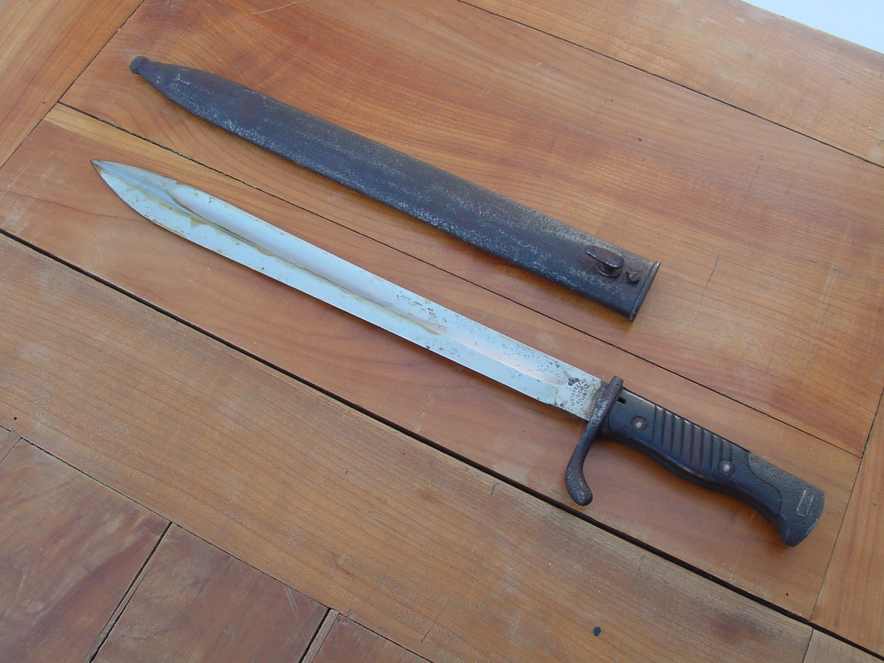 Bajonett 98/05 mit Scheide,WEYERSBERG, ungereinigter Fundzustand, Länge insgesamt 52cm, Drücker gängig, Original