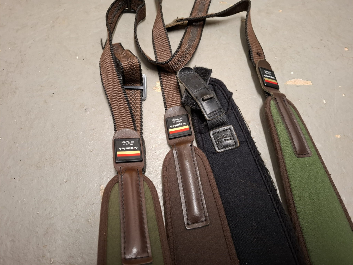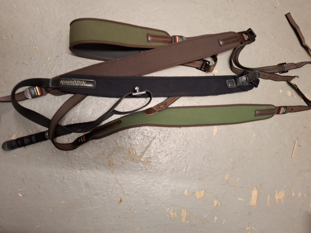 4gebrauchte Gewehrriemen aus Nachlass, 1x mit Schnellverschluss