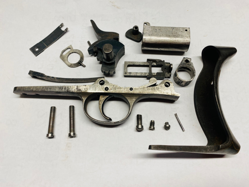 Das Konvolut beinhaltet diverse Einzelteile eines Rolling-Block-Gewehrs älteren Baujahrs, deren Zustand den Abbildungen zu entnehmen ist. Sämtliche Komponenten, einschließlich einer massiven Schaftkappe, präsentieren sich in gutem Zustand.