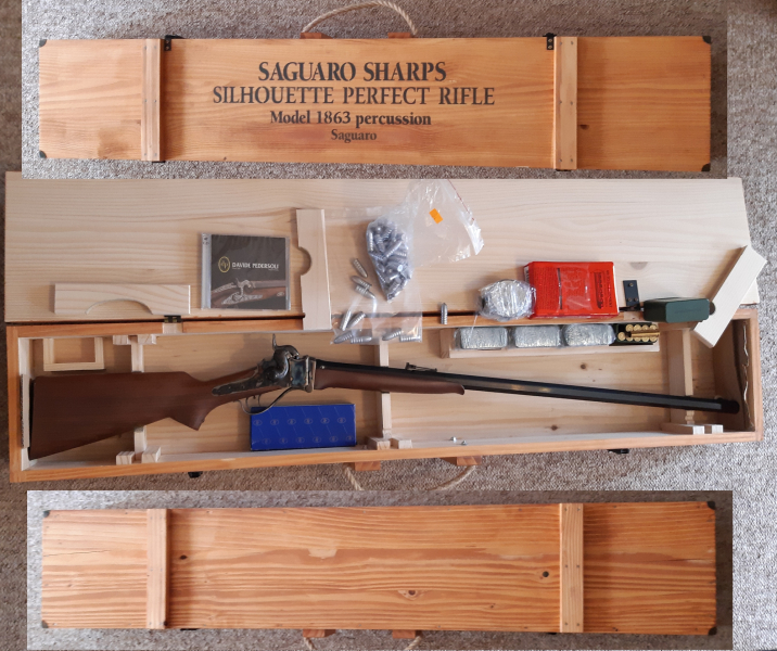 Verkaufe ein Gewehr Saguaro Sharps Silhouette Perkussion Kaliber 45-70 (frei ab 18 Jahren), weitere Details siehe Internet, langer Lauf ca. 80cm (denke das waren 32 Zoll), mit 40 Hülsen, 200 Zündhütchen, Fertigmatrizensatz 45-70 Government von LEE, Schlüssel und Dichtung von Pedersoli, CD von Pedersoli, Geschosse (habe sie nicht gezählt – vermutlich 40-50 Stück) – ALLES UNBEFUMMELT UND NEU – was noch in Folie ist, wurde noch von SaguaroArms verpackt.., so wie es vor ein paar Jahren von SaguaroArms kam (war 2021 meine ich)… Die Holzkiste (leider nicht abschließbar) hat auf der Rückseite zwei Risse – war aber schon so und hat keinen Einfluss auf die Funktion, weiterhin sind ein paar Kleine Dellen und Kratzer in der Holzkiste – das kam aber auch schon so an… wunderschönes Gewehr, habe es in den letzten Jahren nicht benötigt und Stand nur im Tresor und das wird wohl künftig so bleiben, daher gebe ich sie nun weiter…