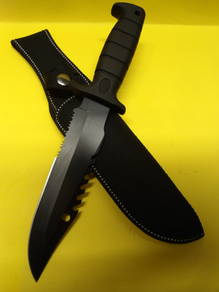 Messer mit scharfer, geschwärzter Klinge - teilw. Sägezahnung