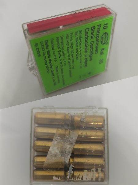 zum Verkauf steht ein Päckchen Original Wadie Knall- bzw. Platzpatronen (10 Stück) im selten Kaliber .35