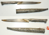 Dolch mit 15m langer Klinge, ich denke vom Balkan, verzierter Metallgriff und mit Metall beschlagene Holzscheide, die Metallnähte am Griff haben sich etwas geöffnet