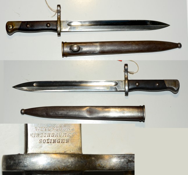 Bajonett für Chile Mauser, Modell 1893, 25,3 cm lange Klinge, Hersteller Weyersberg Kirschbaum & Co Solingen, guter Zustand
