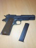 Angeboten wird von IWG, Enser Sportwaffen. Eine Schreckschusspistole Mod. Government cal. 8mm K. Die Nummer der PTB ist 531. Die Pistole ist brüniert schwarz mit braunen Kunststoffgriffschalen. Die Trockenfunktion ist gegeben. Die angebotene Pistole wurde 1992 erworben und hat die entsprechenden Gebrauchsspuren. Die Brünierung ist im Bereich des Griff stark abgerieben. Der Zustand der Pistole ist auf den Fotos zu sehen. Die Pistole ist solide verarbeitet mit einem Gewicht von ca. 975 gr. Die Fotos sind Bestandteil der Auktion.