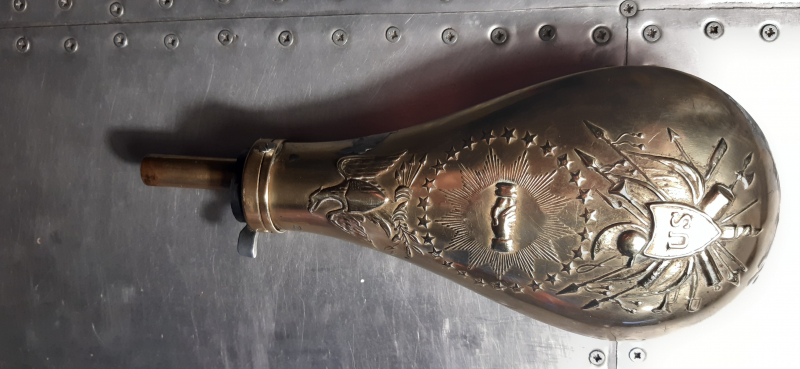Schöne Messing Pulverflasche!Habe vor ca,40 Jahren mal Vorderlader Geschossen.Damals durfte man noch aus der Flasche Laden!Nix Glasröhrchen oder Pillepalle!Wir Leben trotzdem alle noch.Der Füllstutzen müßte 60 Grain sein.War aus meiner Misissippi Rifle die ideale Ladung.Mit 60 Grain Minie Geschoß sehr Präzise.Aber jetzt nur noch schöne Erinnerung.Viel Spass beim bieten.