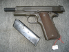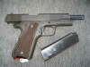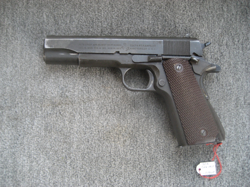 biete aus einer Sammlung eine1911erA1 Colt Army Pistole. Kal. .45ACP. Pistole ist im sehr gutem Originalzustand, teilweise noch mit altem Fett. Pakerisierung noch fast vollständig erhalten. Lediglich leichter Abrieb am Schlitten vorn links (verm. vom Holster). Neubeschuss München 1978 (Schlitten links, Bild 1 u.4). Lauf blank mit klaren Zügen und Feldern. Stramme Mechanik, verm. ist mit der Pistole nicht viel geschossen worden. Links am Schlitten die komplette zweizeilige Patent und Herstelleraufschrift mit dem Colt Pferd / Logo in der Mitte. alles klar lesbar. Auf dem Griffstück Inspektorenstempel G.H.D (Brigadier General Guy H. Drewry). Rechts auf dem Griffstück US Property, die "M1911A1 U.S.Army" Kennung und die Waffennr. Magazin ebenfalls neuwertig. Griffschalen makellos. Ein schönes Stück, für Sammler, durch den Neubeschuss aber auch für alle Anderen. Falls sie eine andere Preisvorstellung haben, können sie, solange noch kein Gebot abgegeben wurde, mir gerne mailen.