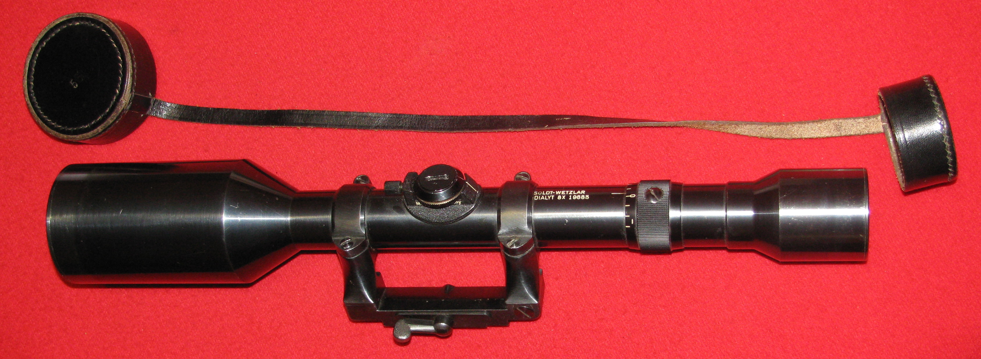 Zum Verkauf kommt ein seltenes ZF / Zielfernrohr / Stahlglas, ein HENSOLDT WETZLAR ZIEL - DIALYT 8X , ( # 19883 ) mit dem Absehen 1