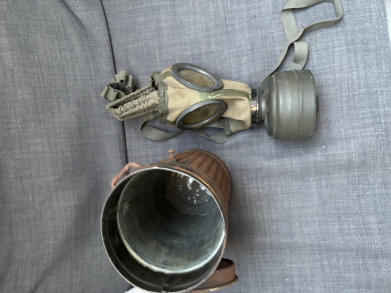 Moin, ich biete eine Gasmaske mit Behälter (WW2). Die Maske an sich befindet sich in einem ganz guten Zustand, der Behälter hingegeben weißt starke Gebrauchsspuren auf (Rost) (siehe Bilder).