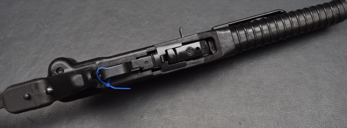 Sicherung am Abzugsbügel, herausnehmbares 5-Schuss Magazin. Kunststoffschaft von Ram-Line klappbar.