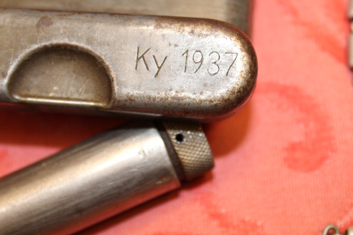 In unberührtem nicht gereinigtem Fundzustand. Alle Teile original Wehrmacht!!! Der Öler ist gestempelt :"Ky1937". Porto EU= 12,80€