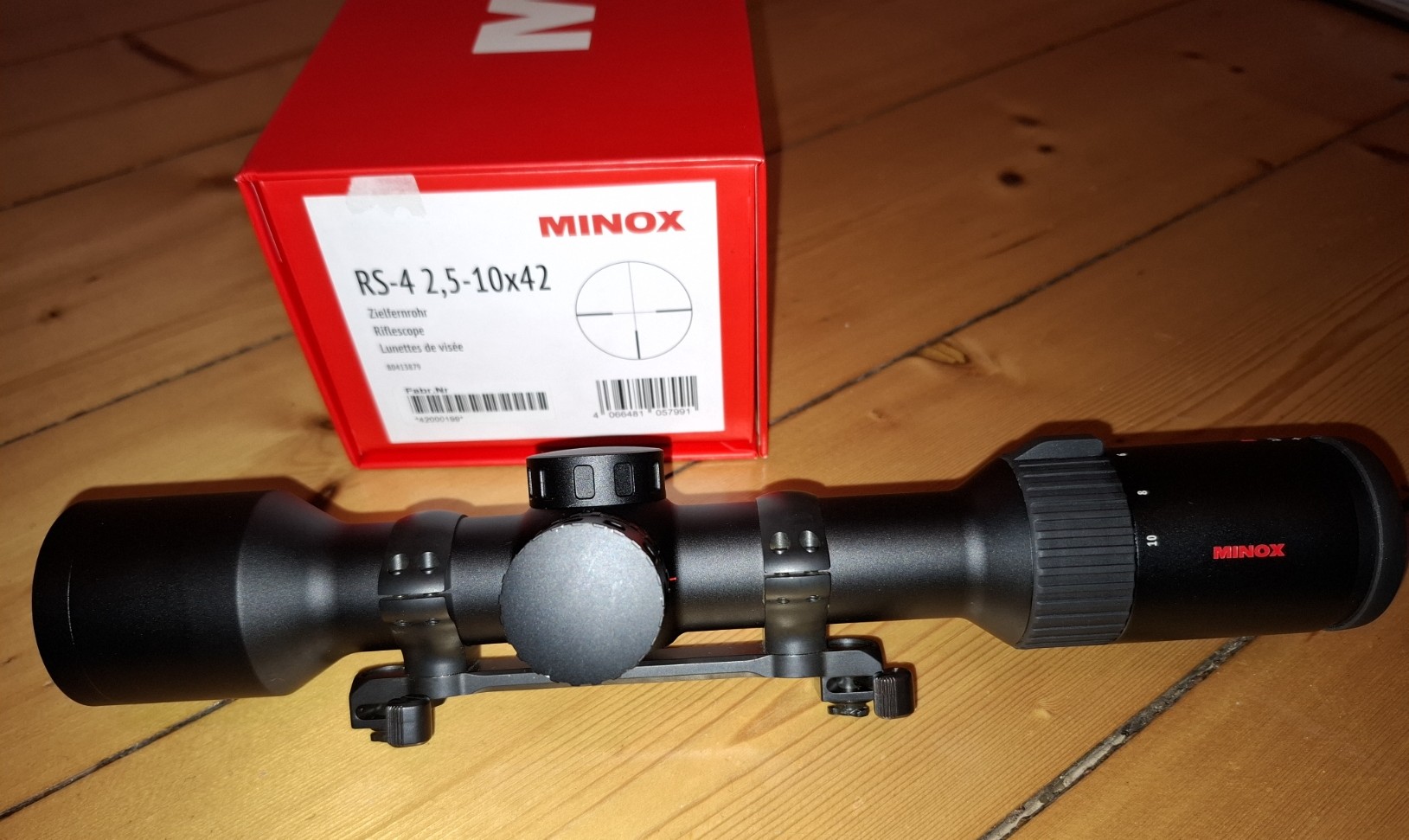 Zum Verkauf kommt ein Zielfernrohr MINOX RS-4 2,5-10x42 mit Absehen 4 und Leuchtpunkt.
