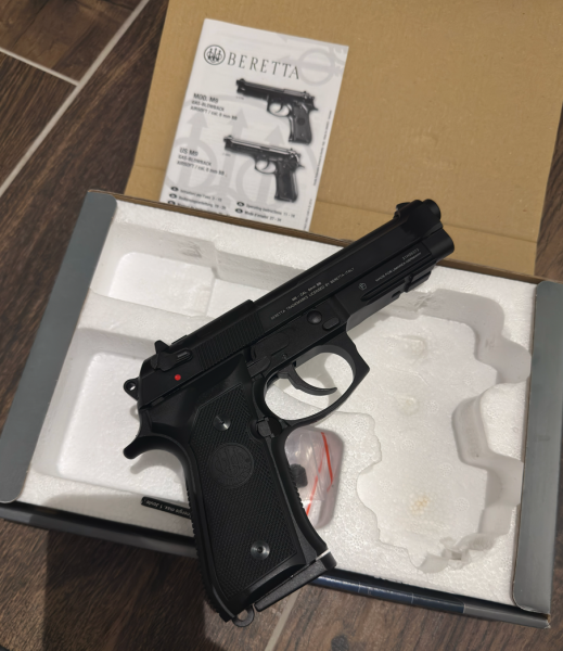 Angeboten wird eine KWA Beretta M9 Gas-Blowback-Pistole, importiert von Umarex. Die Airsoft-Pistole war lediglich als Ausstellungsstück vorgesehen. Sie wurde nie mit Gas befüllt und nie abgefeuert.