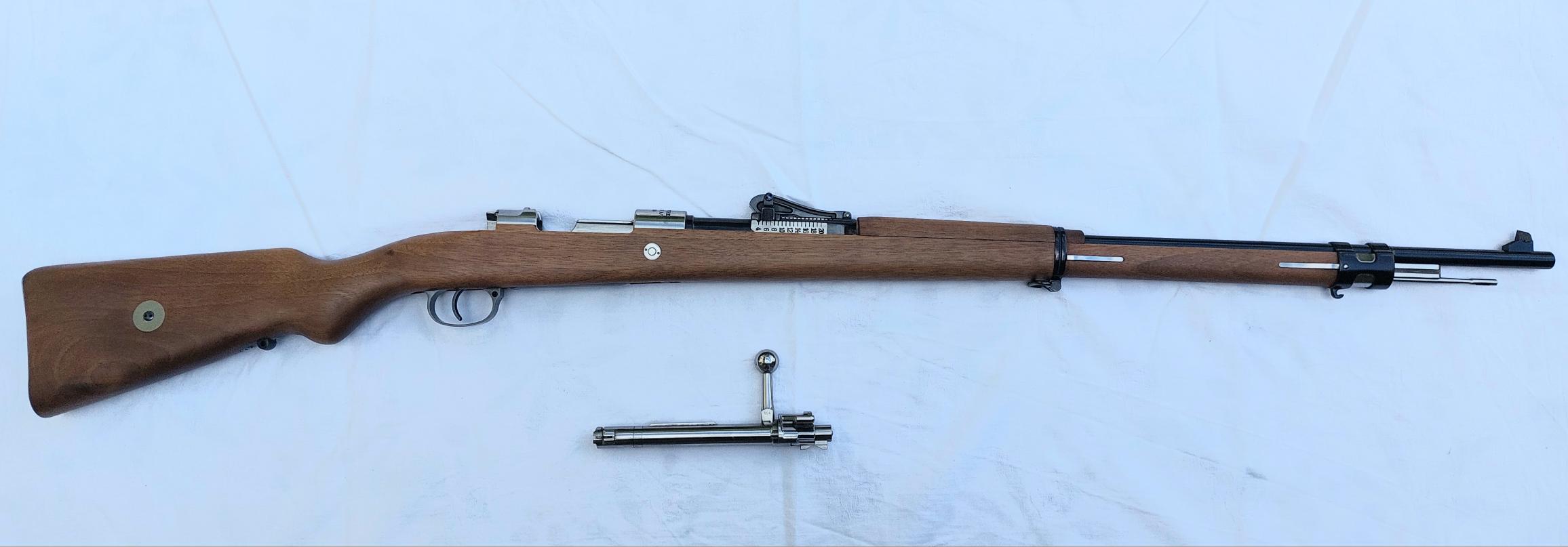 Repetierbüchse - Gewehr Modell 98 Herst.: Fa. Mauser-Werke Oberndorf a. Neckar - Limitierte Auflage: SN: 1998-0001 - 1998-1998 - Kal.: 8 x 57mm JS – SN: 1998-0604 - Nrgl. - Dt. Beschuss 1997 - Magazin:5+1 Schuss - Lauflänge:75 cm, innen sehr gut - Gesamt-, Lauf-, Schaftlänge: 126 /75 /35,5 cm - Gewicht: 4,1 Kg - Visierung: Originalsystem bis 2000 m