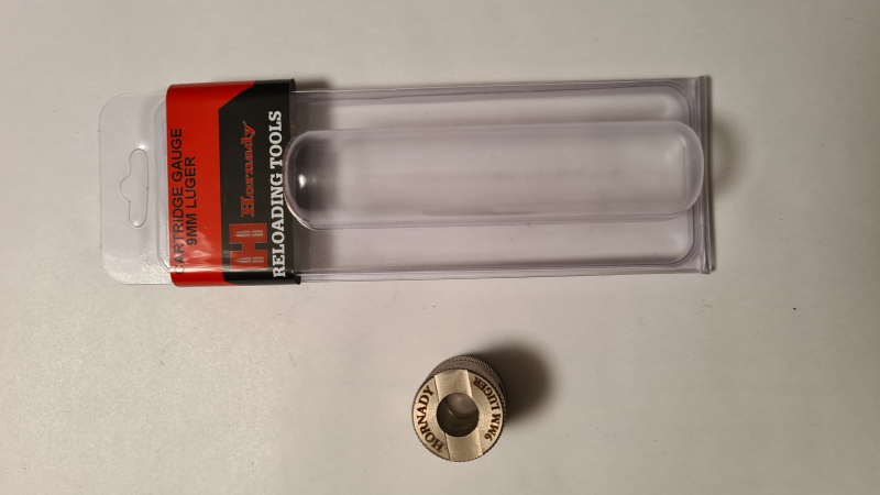 - Eine Hornady Patronenlehre 9mm Luger (Cartridge Gauge)