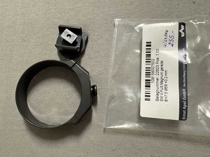 Der Montage Ring ist für eine Zielfernrohr Größe von 56mm + 2mm. Der Neupreis für beide Montagen lag bei 400€.