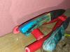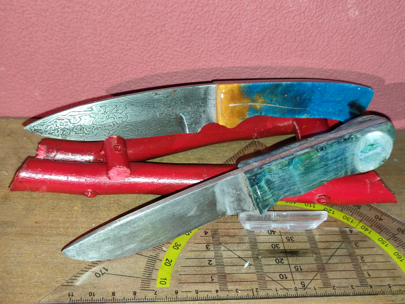 Dazu gebe ich noch ein Damaszener Messer GRATIS, mit bläulichem Epoxidgriff, aus meiner Sammlung dazu,