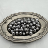Durch das Trommeln wird das überschüssige Material des Gussbutzens umgeformt. Die Form der Kugel wird dadurch leicht unrund. Dies ist technisch bedingt nicht anders möglich und kein Reklamationsgrund. Der Kugeldurchmesser bewegt sich in einem Toleranzbereich von ca. ± 15 Hundertstel.