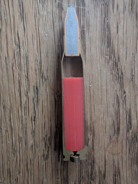 Biete hier ein sehr schönes Schnittmodell einer Büchsenpatrone an. Kaliber ist mir nicht bekannt. Privatverkauf, keine Garantie, keine Rücknahme.