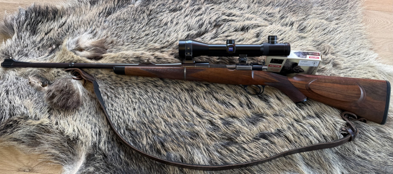 Exklusive und hochwertige Repetierbüchse von Manfred Orth als Take Down im Kaliber .30-06 mit Zielfernrohr Zeiss Varipoint VM 2,5-10x50 T mit Leutabsehen. Diese Custom Büchse hat eine hervoragende Schussleistung, gepaart mit der Zuverlässigkeit eines Mauser 98er Systems. Mit dem seltenen Take-Down System ist sie die ideale Reisebüchse.