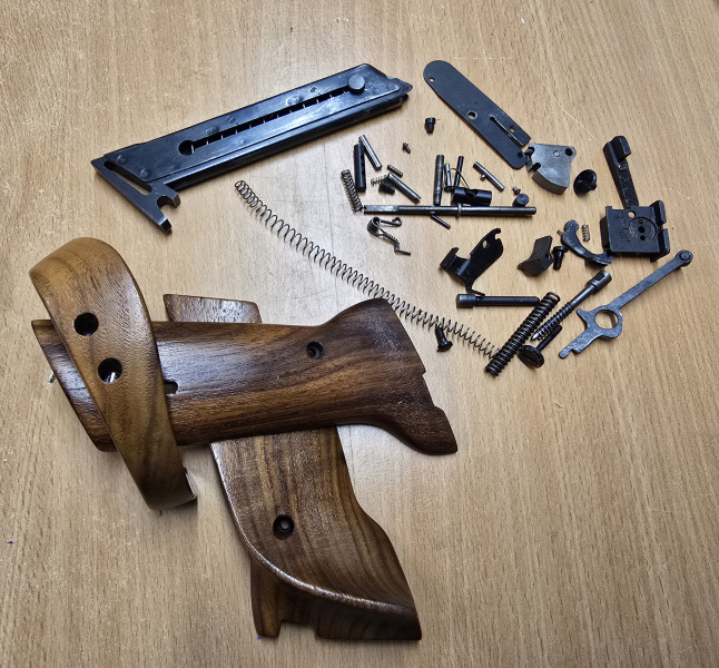Ersatzteilkonvolut für eine Sportpistole High Standard “Supermatic". Siehe Bild