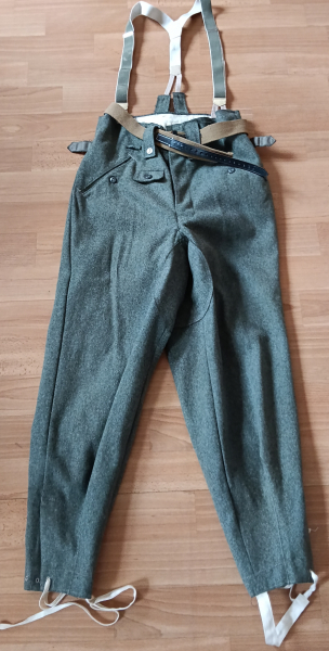 verkaufe Hier wegen Sammlungsauflösung meiner Reenactmentausrüstung eine Feldhose M43 Wehrmacht mit Gürtel Wehrmacht und dazugehörigen Hosenträgern. Die Hose hat die Grösse 46 und wurde bisher nur zweimal kurz getragen. Einmal zur Anprobe und einmal für ein Foto und hing ansonsten im Schrank. Bei der Hose und dem Gürtel handelt es sich um REPROS, die Hosenträger sind Originale aus einer Sammlungsauflösung sogenannter ungetragener Kammerstücke und tragen den Herstellerstempel BMN 43. Da ich mittlerweile einen Grossteil meiner Reenactmentsammlung 1. und 2.Wk veräussert habe, habe ich für die Hose keine Verwendung mehr.