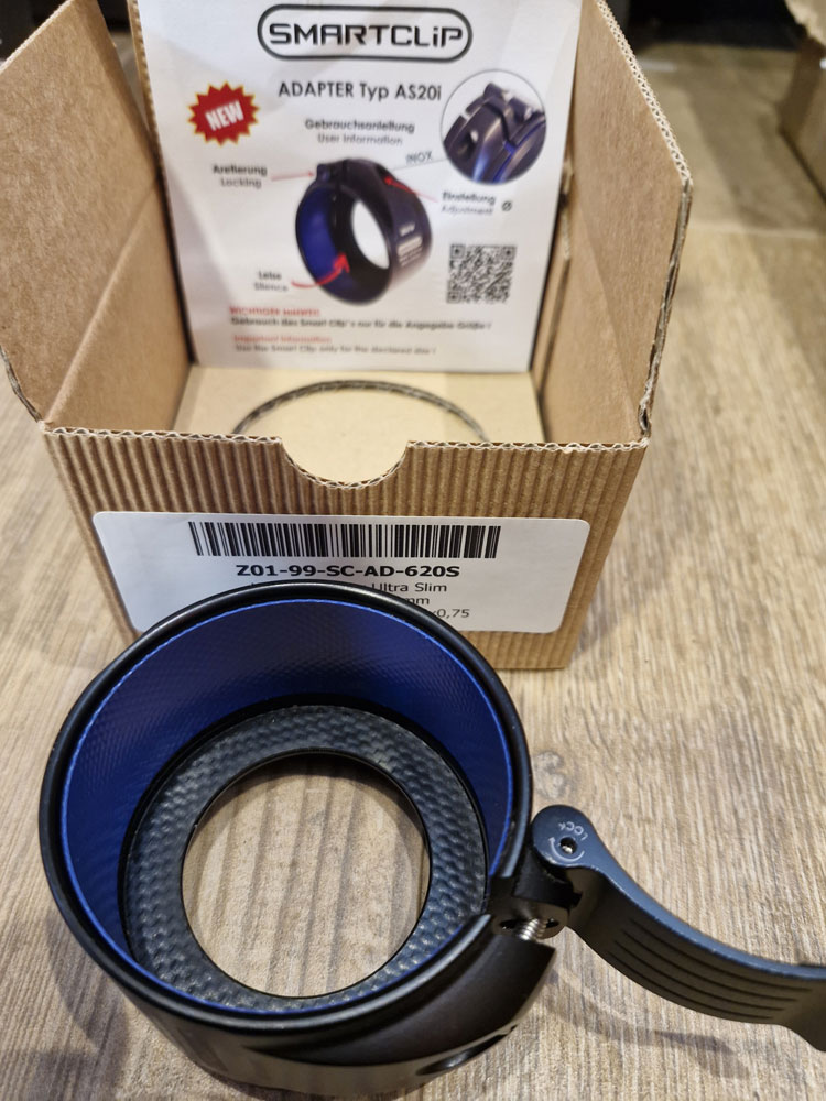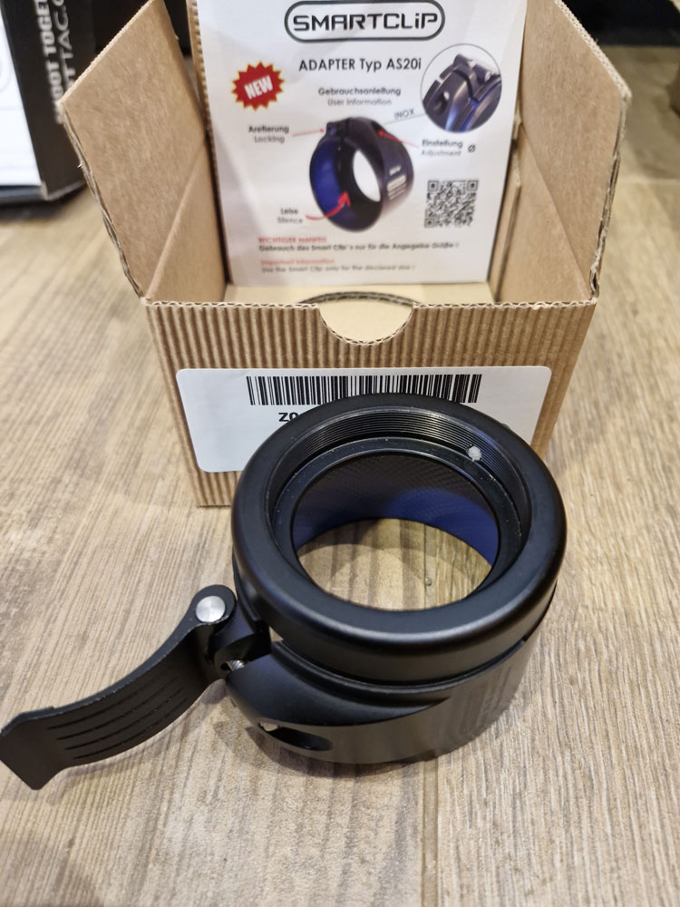 Smartclip Modell: AS 62 mm U.S.E, ULTRA SLIM Adapter zur super tiefen Montage (wenn wenig Platz zwischen ZF und Lauf vorhanden ist, nur 2,5mm dicke Wandung) für Vorsatzgeräte mit Gewinde M52x0,75