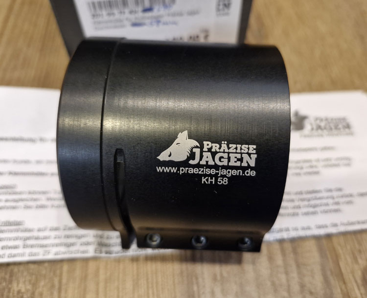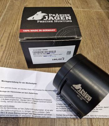 Der Adapter ist für Zielfenrohre mit einem Objektiv-Außendurchmesser für 58mm bestimmt. Die Aufsatztiefe des Adapters beträgt 40mm.