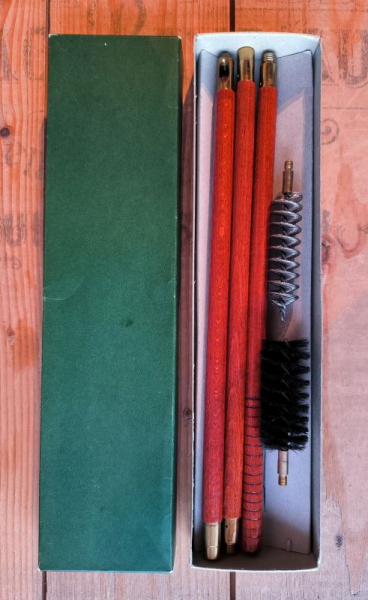 Sie steigern auf eine etwas ältere, aber unbenutzte Reinigungsgarnitur für Flinten.