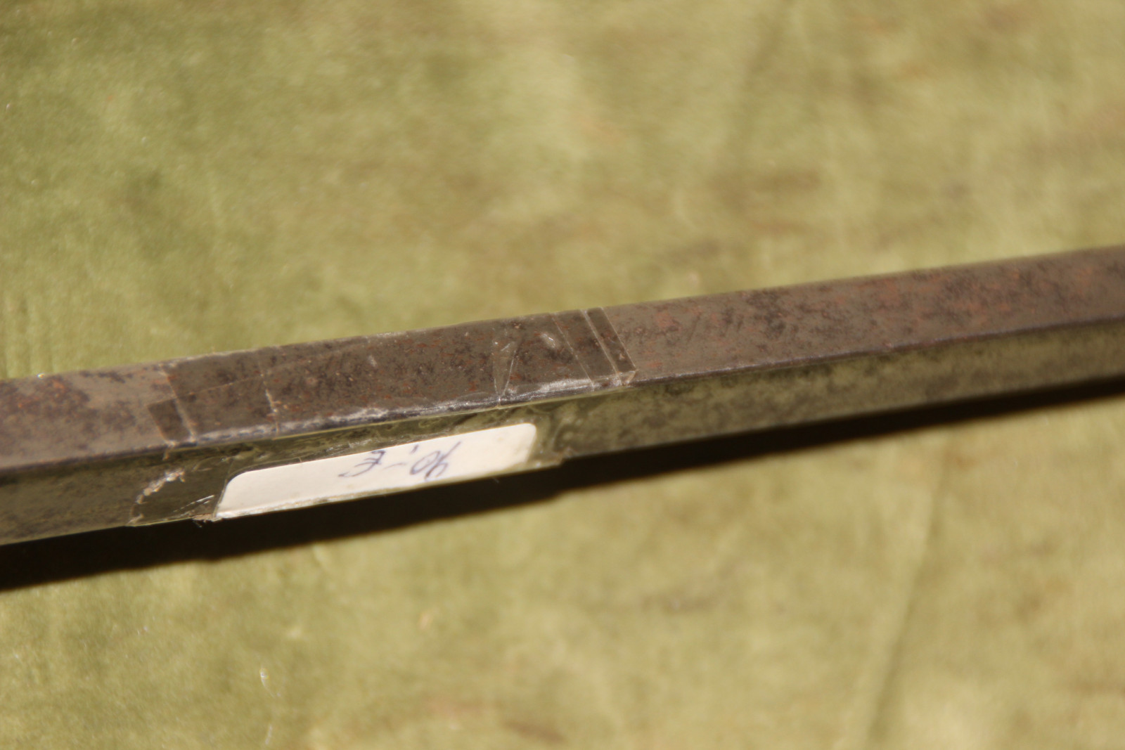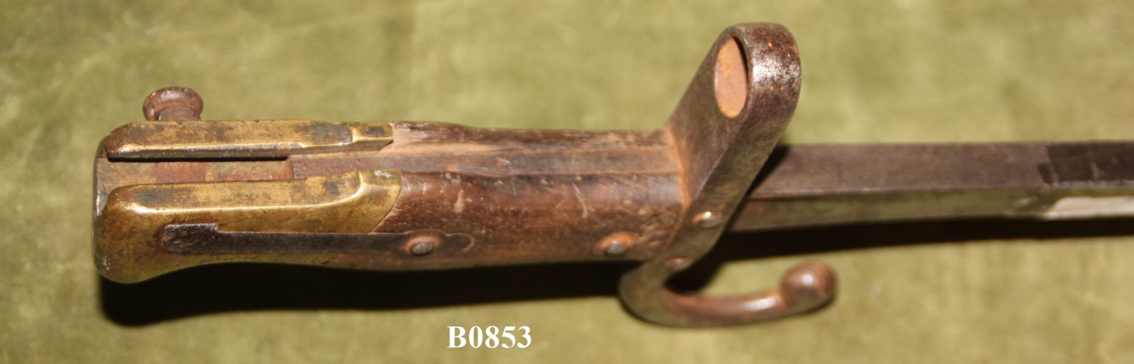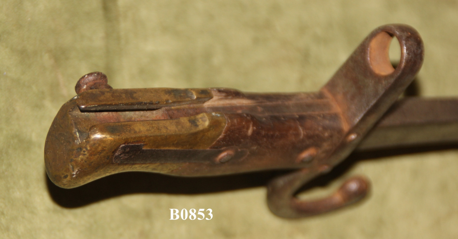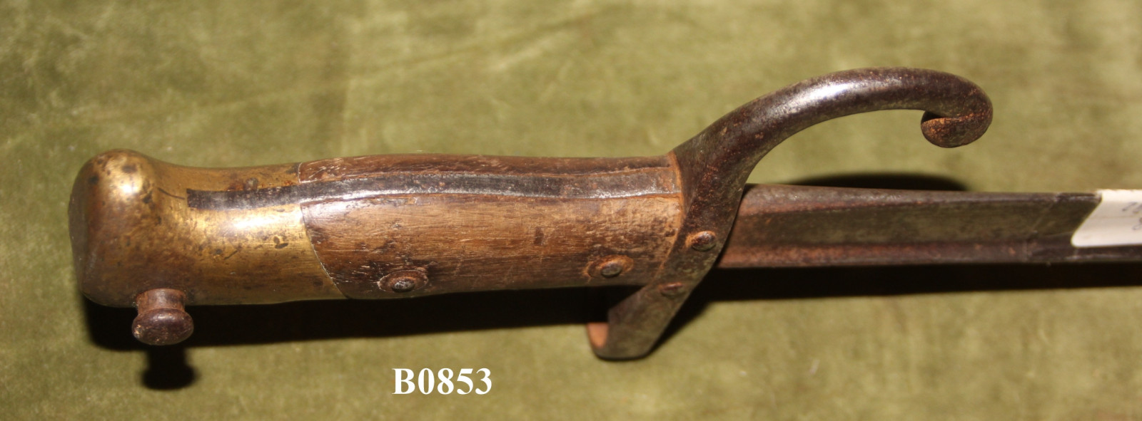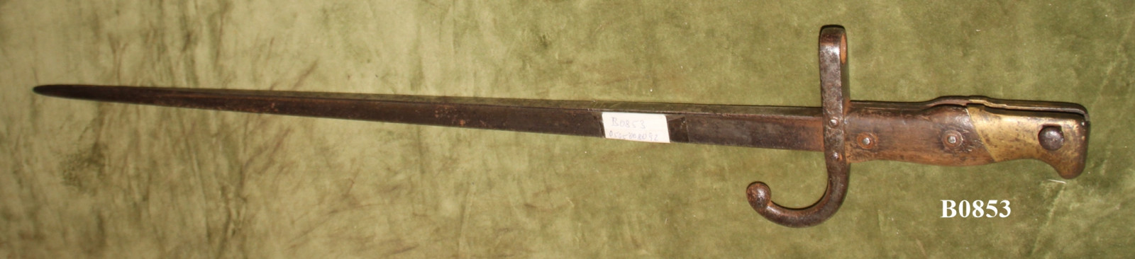 Seltenes griechisches Bajonett M 1874/03, ohne Scheide, für das Gewehr 1903 modifiziertes M 1874. Klingenrücken graviert mit Hersteller Waffenfabrik Steyr und Jahreszahl 187?? (nicht mehr vollständig lesbar, die Parierstange gestempelt mit zwei Buchstaben des Griechisch/kyrillischen Alphabets, sowie eine unleserliche Seriennummer. Griffschalen mit Gebrauchspuren, der Griffknauf aus Messing teilweise mit dunkler Patina, fleckig, Klinge, Parierstange und Drücker/Drückerfeder fleckig, in den Flecken stellenweise fein narbig. Griffknauf etwas gestaucht. Bis auf die beschriebenen Mängel keine weiteren Mängel erkennbar. Insgesamt noch sammelwürdiger Zustand. Siehe Fotos. Fotos sind Bestandteil der Beschreibung. Alle Angaben nach bestem Wissen und Gewissen. Dies ist ein Privatverkauf. Gemäß EU-Recht unter Ausschluss von Gewährleistung und jeglicher Sachmängelhaftung. Der Käufer ist selbst verantwortlich für die Einhaltung der gesetzlichen Vorschriften / des Waffenrechtes seines Landes. Fragen bitte rechtzeitig vor dem Auktionsende stellen. Ich beobachte meine Auktionen und mein Mail-Postfach nicht permanent. Daher bei kurz vor Auktionsende gestellten Fragen keine Garantie auf eine rechtzeitige Antwort. Verkauf nur gegen Vorkasse. Banküberweisung oder PayPal (Bei Zahlung über PayPal erhöht sich der Kaufpreis um die von PayPal einbehaltene Gebühr, bei Zahlung mit der Option Geld an Freunde senden entfallen diese zusätzlichen Kosten) Bei Selbstabholung ist Barzahlung möglich. Die Versandkostenpauschale deckt außer den reinen Portokosten auch einen Anteil an Verpackungs und Fahrtkosten zum nächstgelegenen Paketshop. Versandkosten sind nicht verhandelbar. Die Versandkosten sind Kosten für den Inlandsversand. Versandkosten ins Ausland gemäß den aktuellen Preislisten der beauftragten Paketdienste sind höher.