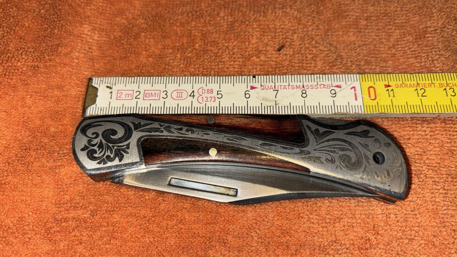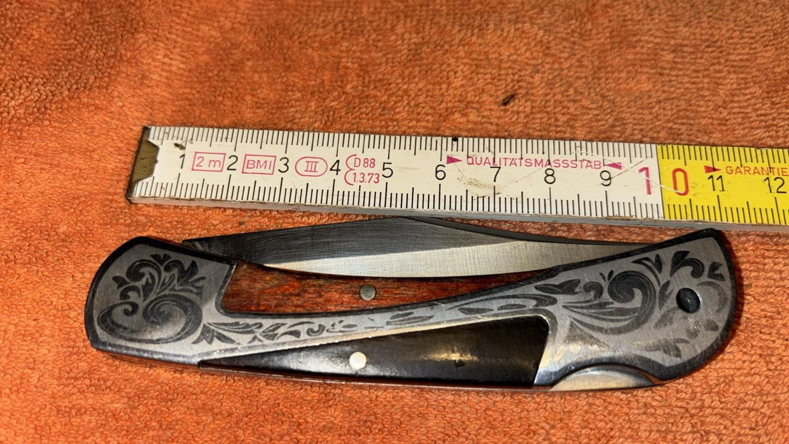 Das Taschenmesser ist mit schönen Gravuren versehen und m.M. nach im guten Zustand.