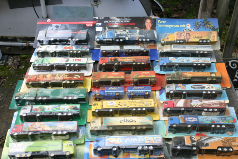 Aus grossem Nachlass-24 stk. -Maßstab ungefähr H0--verschiedene LKW teils mit Werbeaufdruck --s Foto-- --- leichte schäden durch den transport nicht ausgeschlossen -- etwas angestaubt mal saubermachen----demnächst noch mehr--die genauen Typen entnehme man dem Foto--auktion umfasst nur die Modelle --