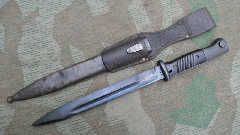Das Bajonett sollte ursprünglich an die Wehrmacht geliefert werden,wurde aber an eine Behörden Einheit z.b. Polizei, SS , oder andere ausgegeben.---------