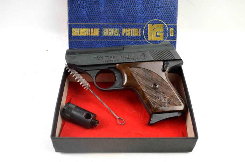 Röhm RG8 im original Karton, originaler Gebrauchsanweisung, neuer Reinigingsbürste und unbenutztem Pyro-Becher; 10 CS Gaspatronen von Wadie 8 mm. Kein weiteres Zubehör!