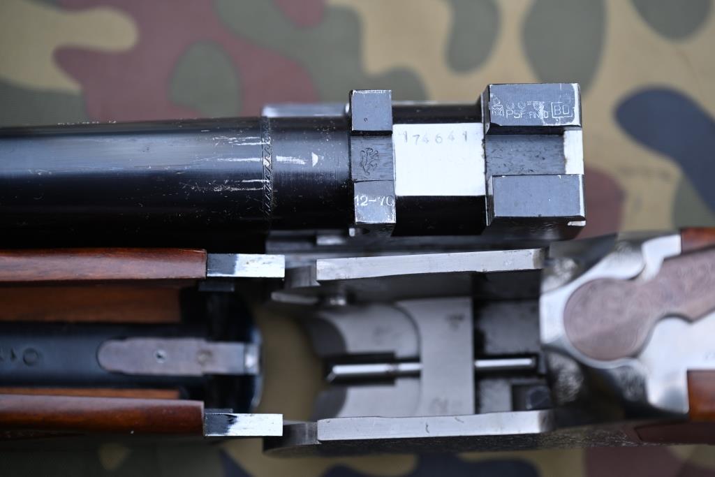 „18,5“ auf oberem Lauf, „18,5“ auf unterem Lauf, Chokeangaben oben 1 Stern (Full), unten 3 Sterne (Modified). Seriennummer, auf der Baskülenunterseite „WISCHO Germany“, darüber Modellbezeichnung "IMPERATOR" und "Modell 1" sowie "BEST TRADE MARK" und "INC. BRESCIANI". Italienische Beschusszeichen "PSF"(aber kein Stahlschrot!), „1440 KG“ und „CAM 70.“ auf Läufen. Codiert-datiertes Beschusszeichen "BD" = 1994. Auf dem oberen Lauf linksseitig "IMPERATOR 12/70".